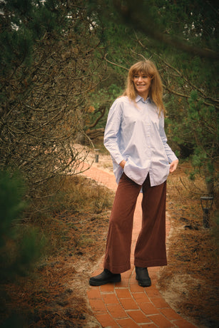 The fit is a classic straight cut with curved seams. We recommend choosing your usual size.